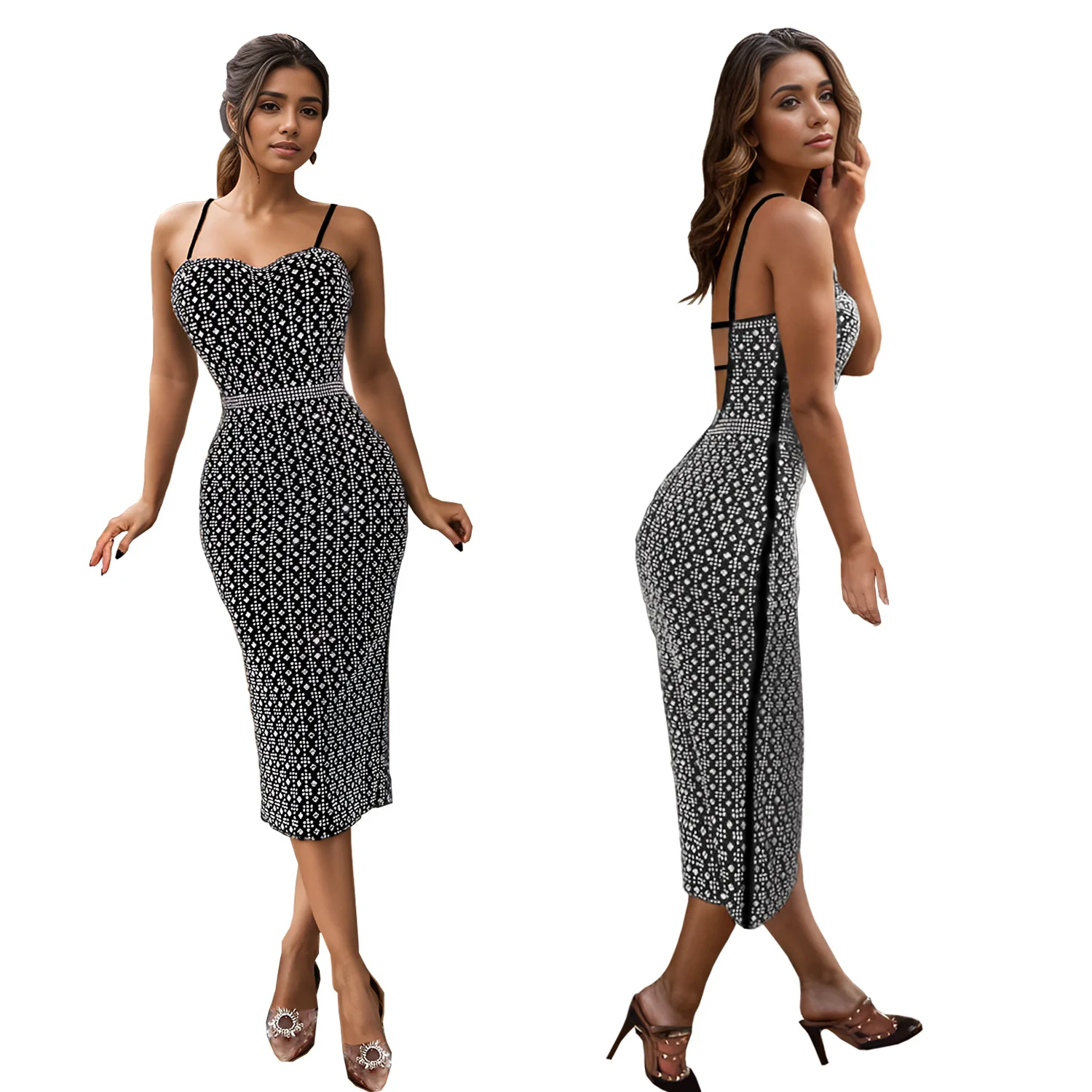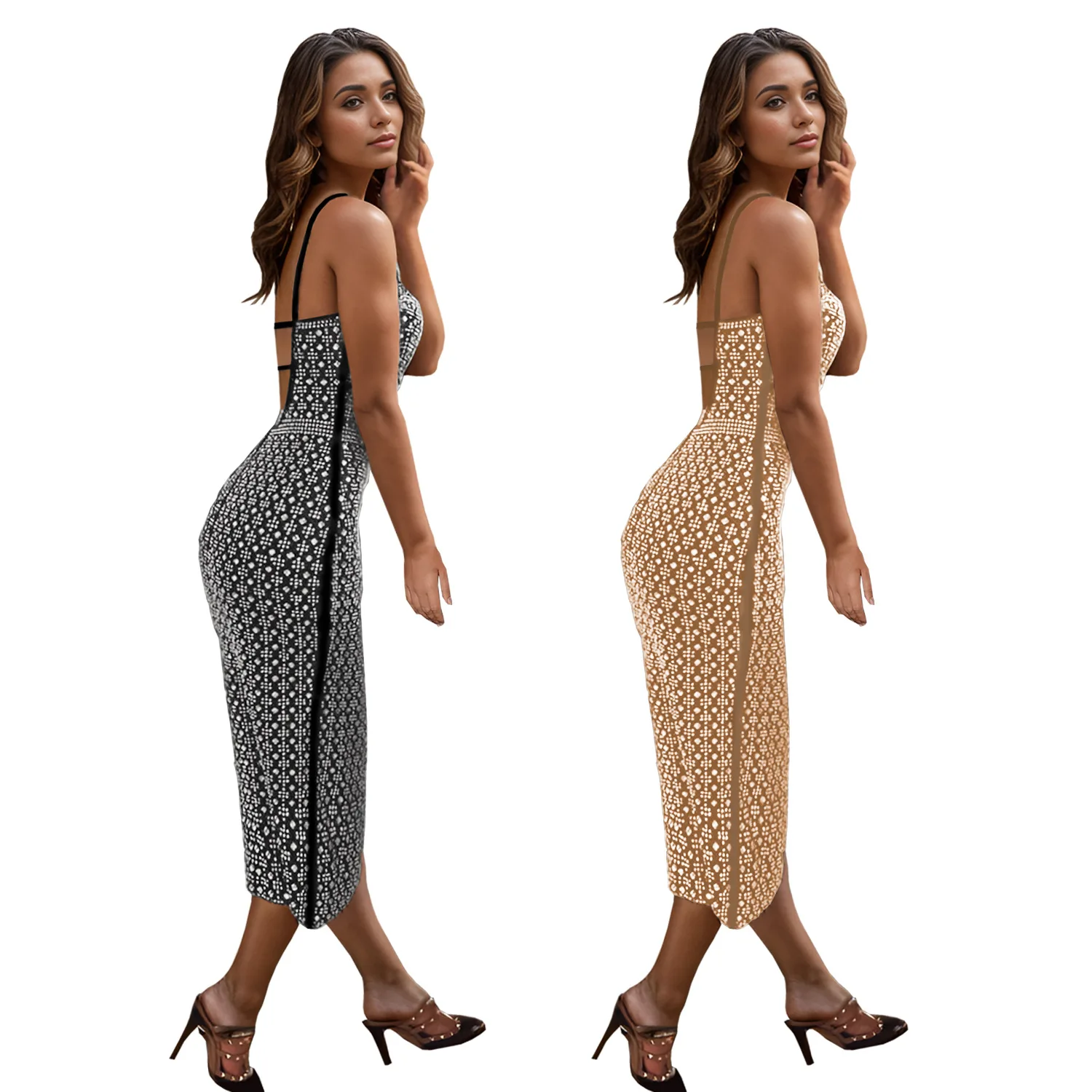 2026 New Evening Dress Slim Women's Hot Diamond Pearl Perspective Waist-covering Hip Stretch Split Dress